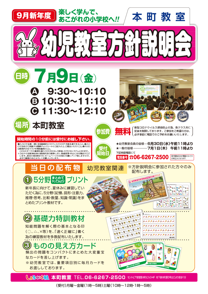 >  幼児教室 方針説明会【本町教室】