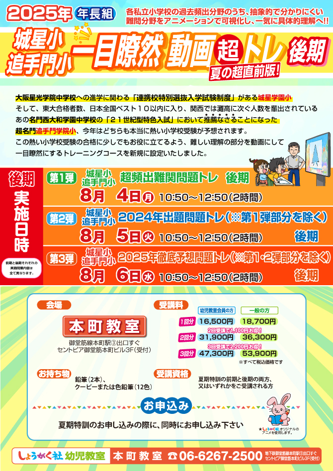 >  『城星小・追手門小 一目瞭然動画超トレ 後期』のお知らせ【本町教室】