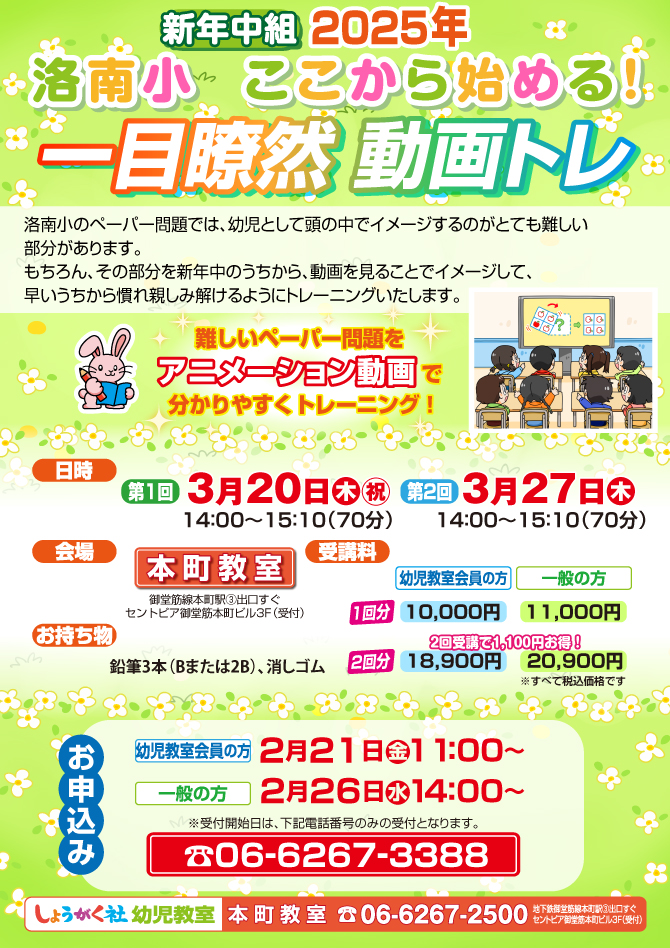 >  『新年中 洛南小 ここから始める! 一目瞭然動画トレ』のお知らせ【本町教室】