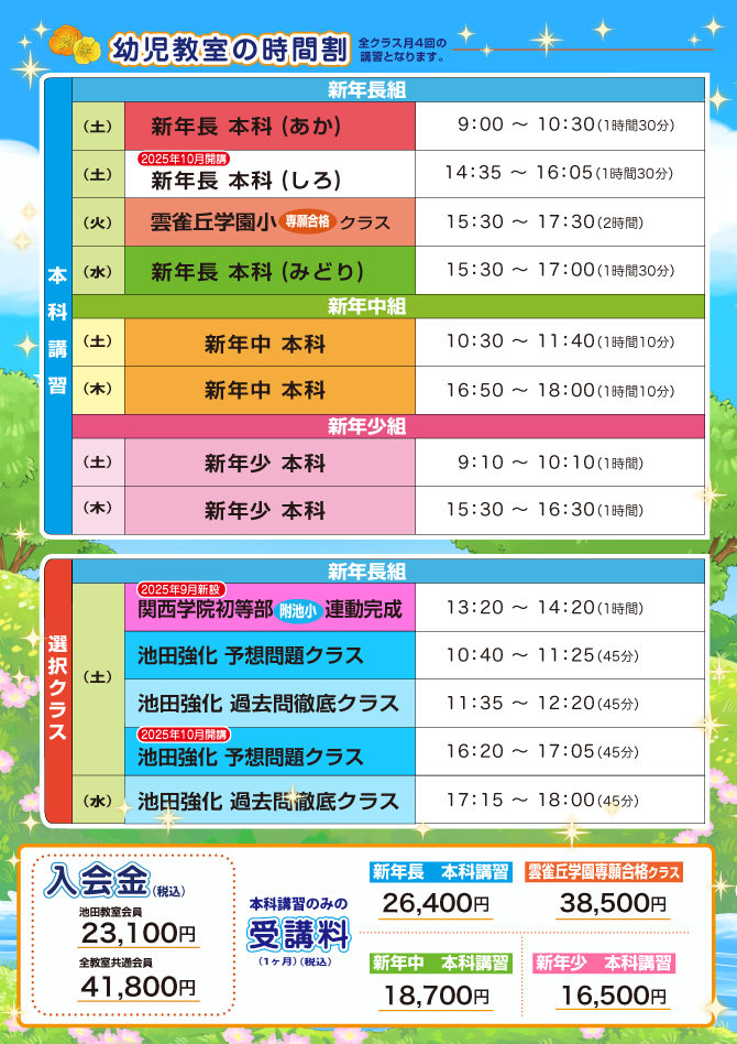 『2025年9月から始まる 2026年度 新入会申込』のご案内【池田教室】