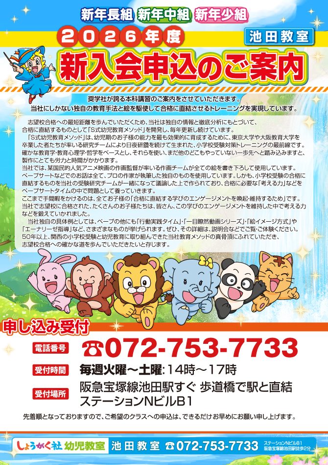 >  『2025年9月から始まる 2026年度 新入会申込』のご案内【池田教室】