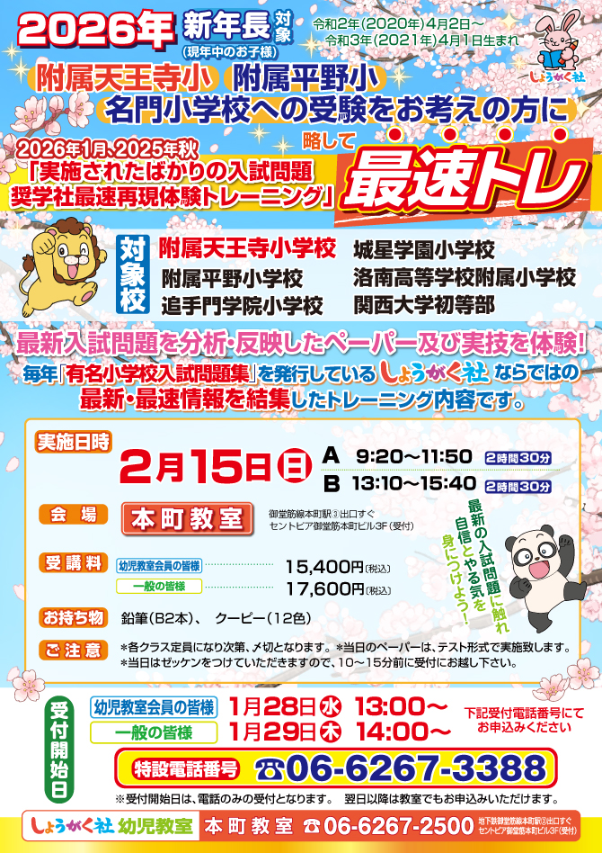 2月15日(日)同時開催!『天王寺小入試速報分析会』