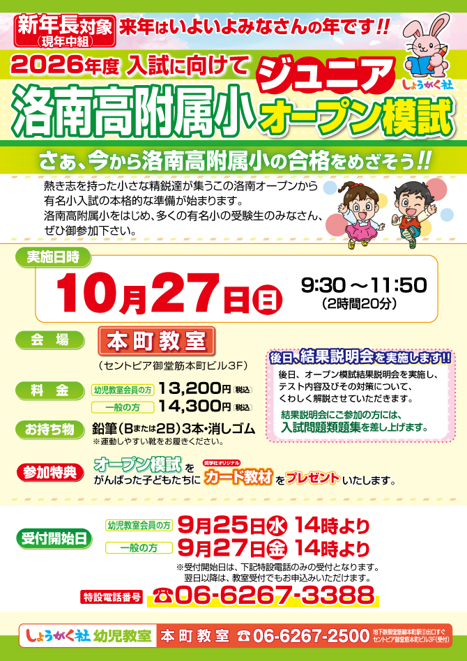 10月27日(日)実施!『洛南高附属小ジュニアオープン模試』のお知らせ【本町教室】