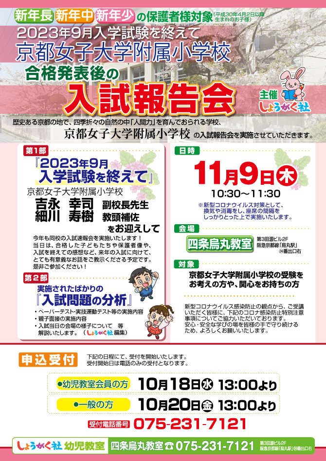 >  11月9日(木)実施!『京都女子大附属小 入試報告会』のお知らせ【四条烏丸教室】