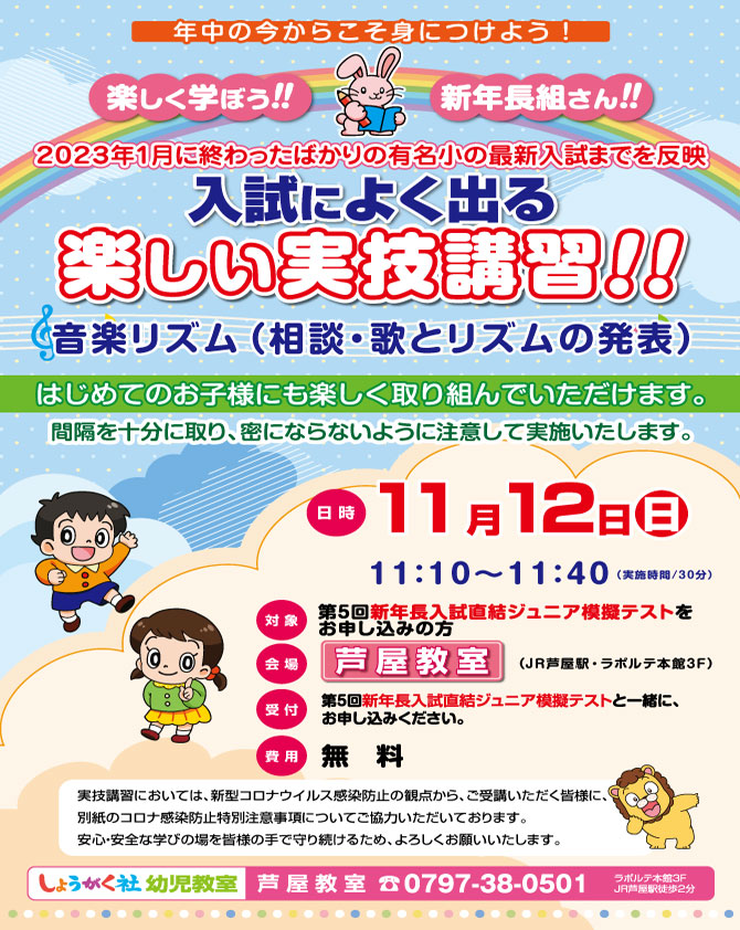 >  11月12日(日)実施!『第5回 入試直結ジュニア模擬テスト』のお知らせ【芦屋教室】