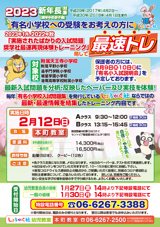2月12日(日)実施!『最速トレ』のお知らせ【本町教室】