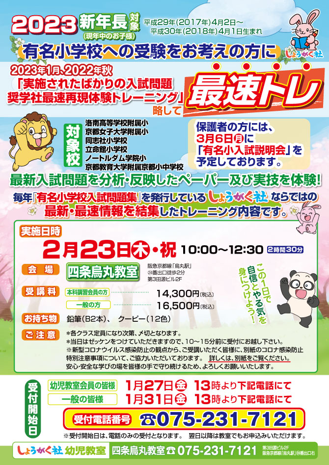 >  2月23日(木・祝)実施!『最速トレ』のお知らせ【四条烏丸教室】