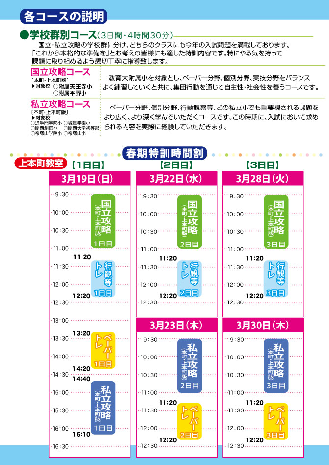 2023年度春期特訓のお知らせ【上本町教室】