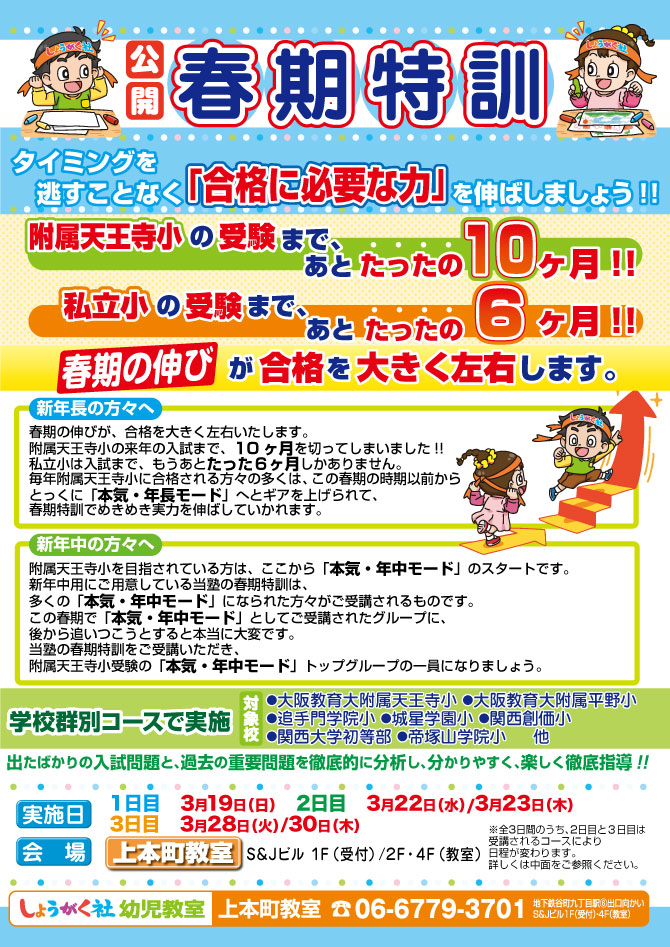 >  2023年度春期特訓のお知らせ【上本町教室】