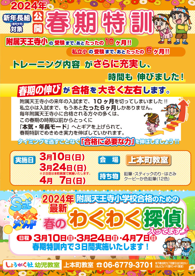 >  2024年度『新年長組 春期特訓』のお知らせ【上本町教室】