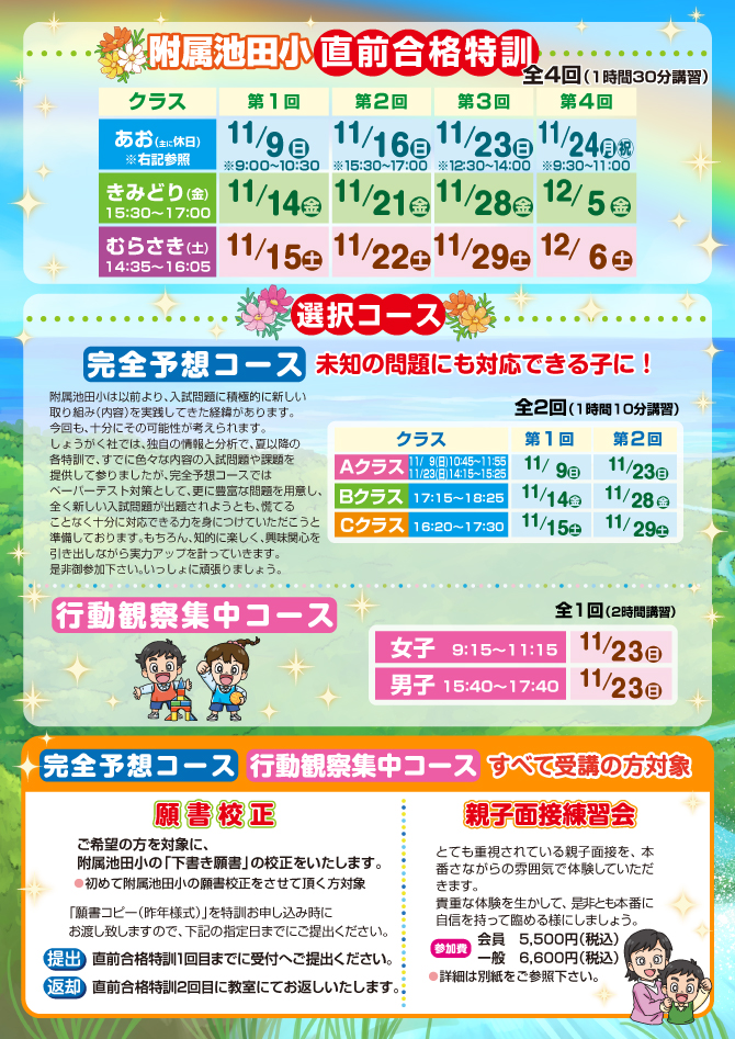 >  2025年『附属池田小 直前合格特訓』のお知らせ【池田教室】