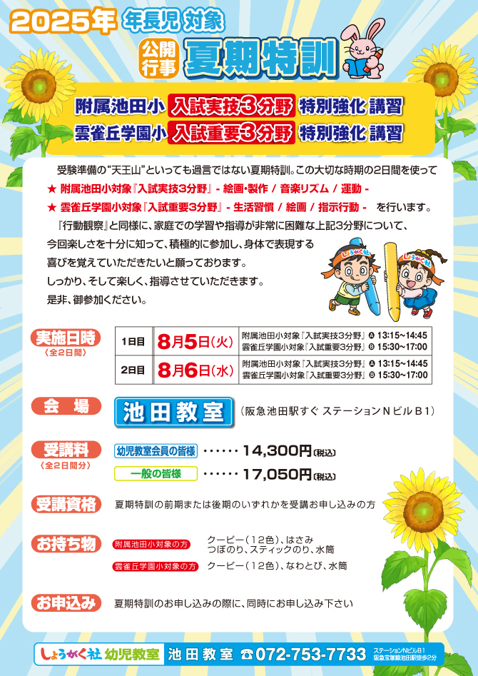 >  2025年度『実技3分野特別強化講習』のお知らせ【池田教室】