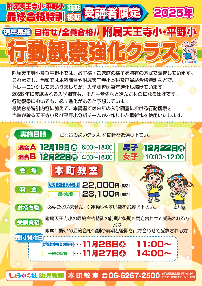 >  2025年『行動観察強化クラス』のお知らせ【本町教室】
