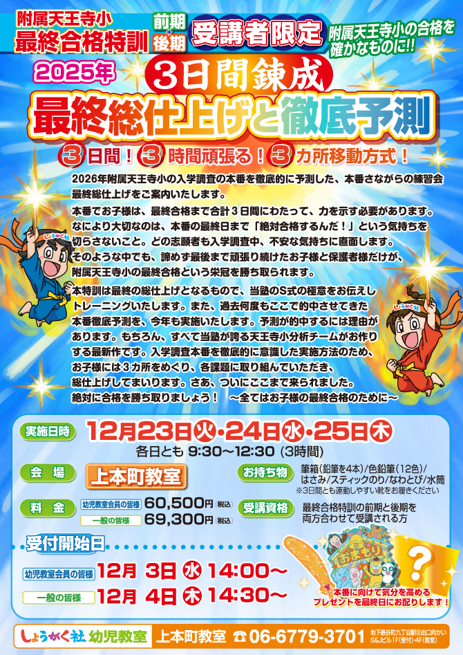 >  2025年『3日間錬成 最終総仕上げと徹底予測』のお知らせ【上本町教室】