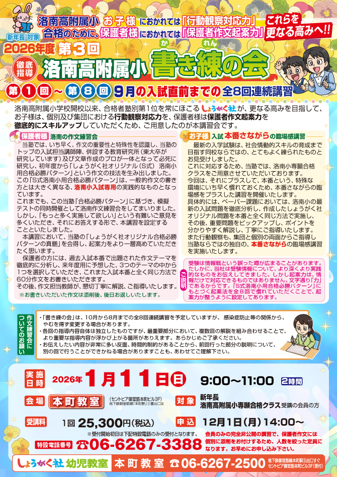 2026年度『第3回 洛南高附属小 書き練の会』のお知らせ【本町教室】