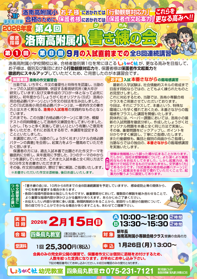 2026年度『第4回 洛南高附属小 書き練の会』のお知らせ【四条烏丸教室】