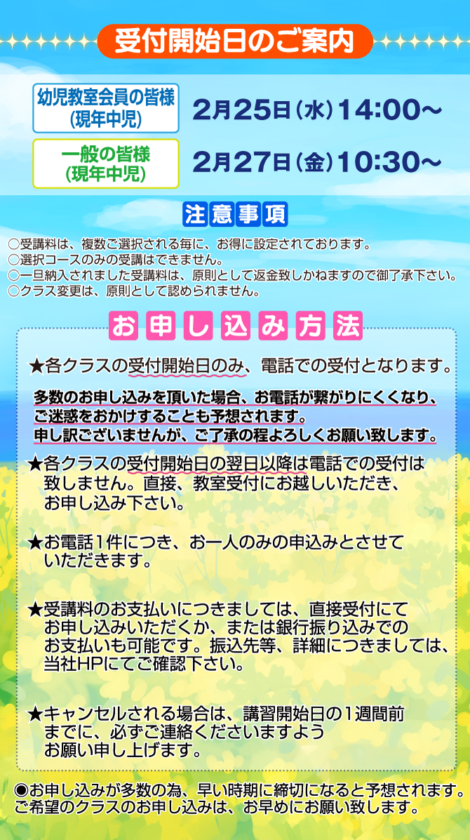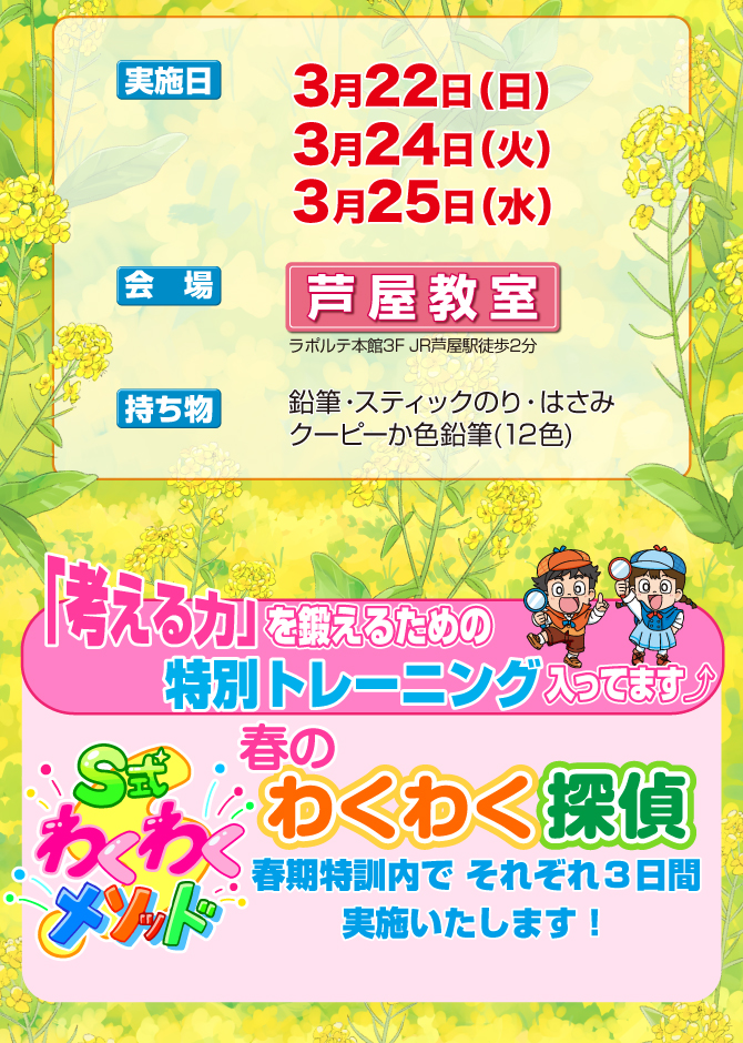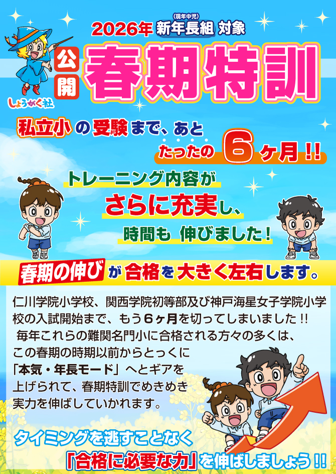 >  2026年『新年長組 春期特訓』のお知らせ【芦屋教室】