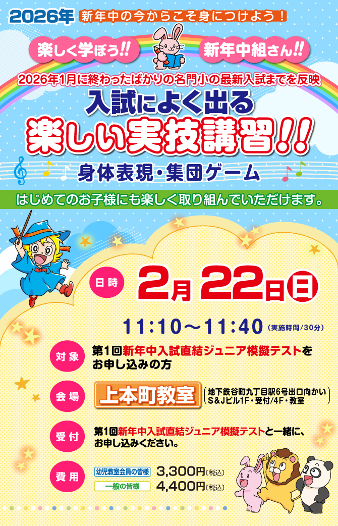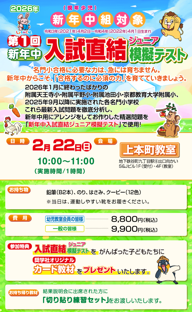 >  2月22日(日)実施!『第1回 入試直結ジュニア模擬テスト』のお知らせ【上本町教室】