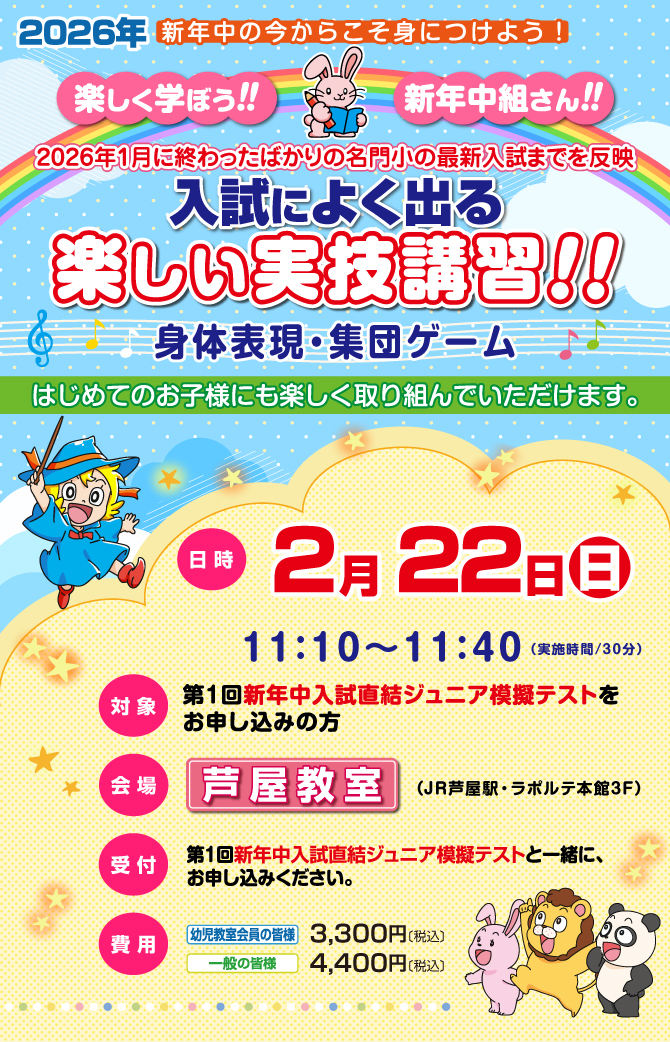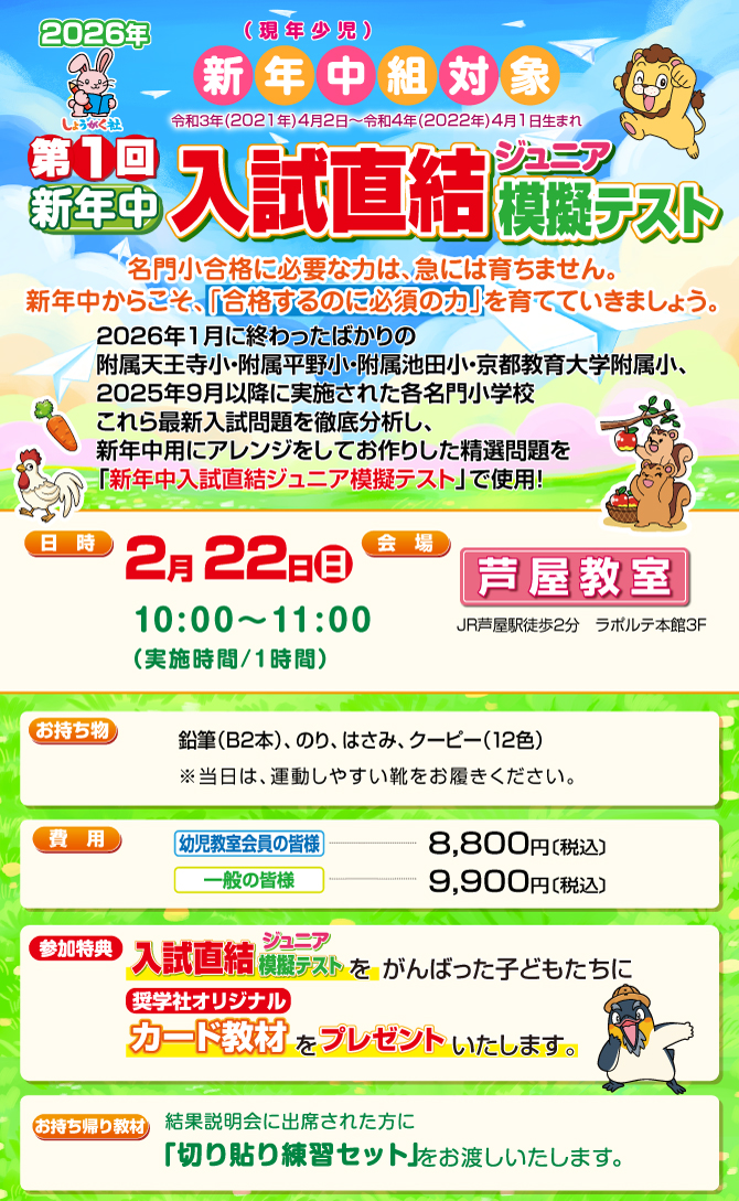 >  2月23日(日・祝)実施!『第1回 入試直結ジュニア模擬テスト』のお知らせ【芦屋教室】