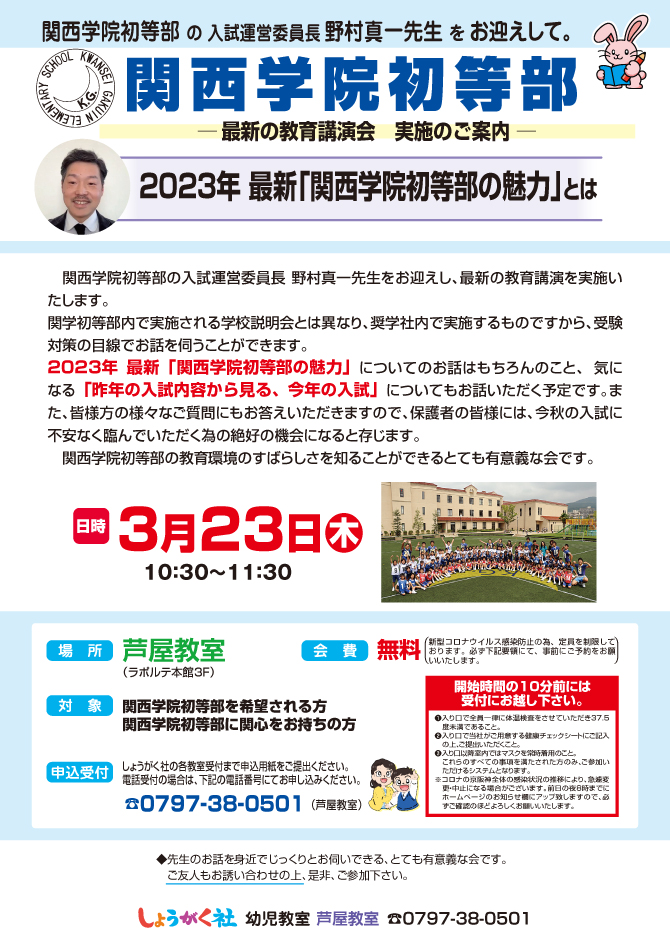 >  3月23日(木)実施!『関西学院初等部 最新の教育講演会』のお知らせ【芦屋教室】