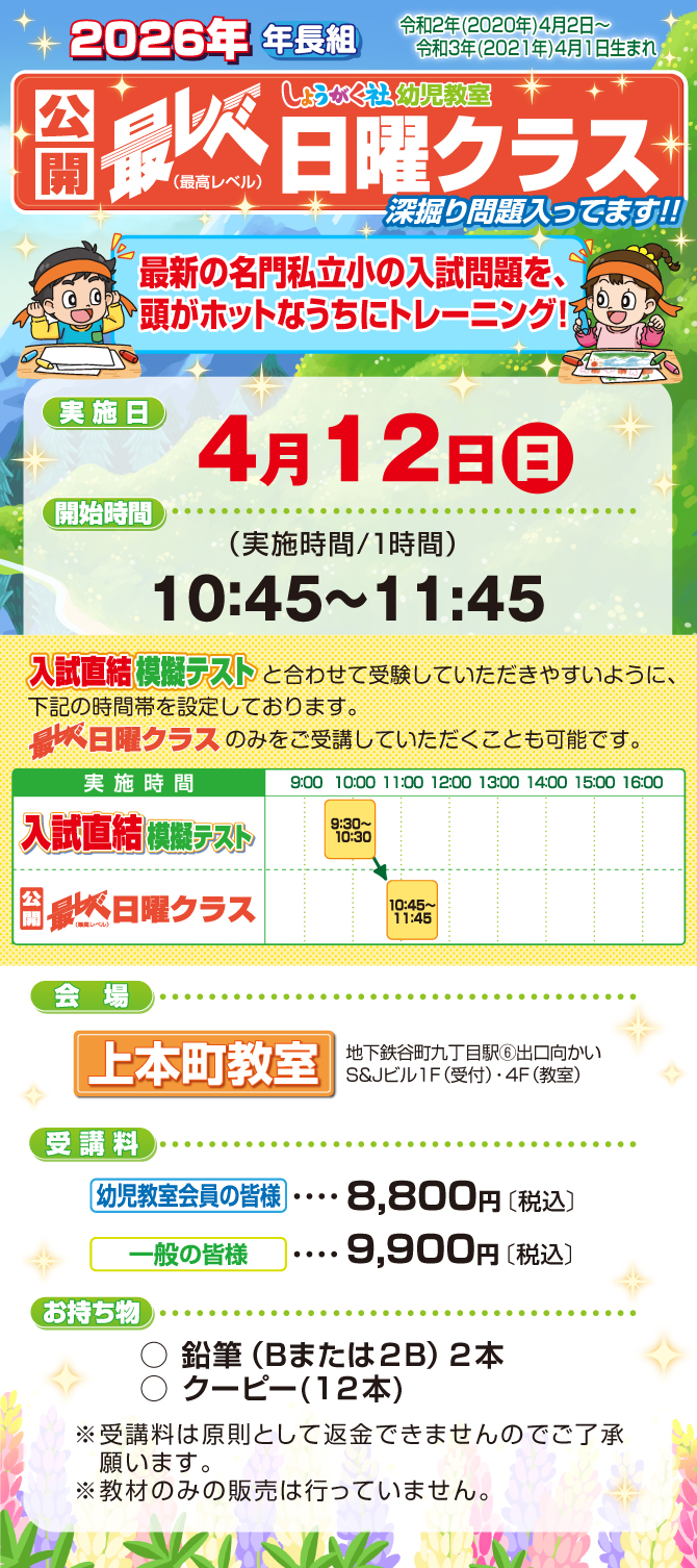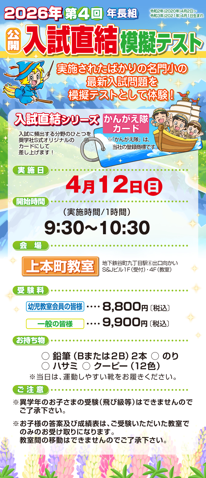 『入試直結年長模擬テスト』【上本町教室】