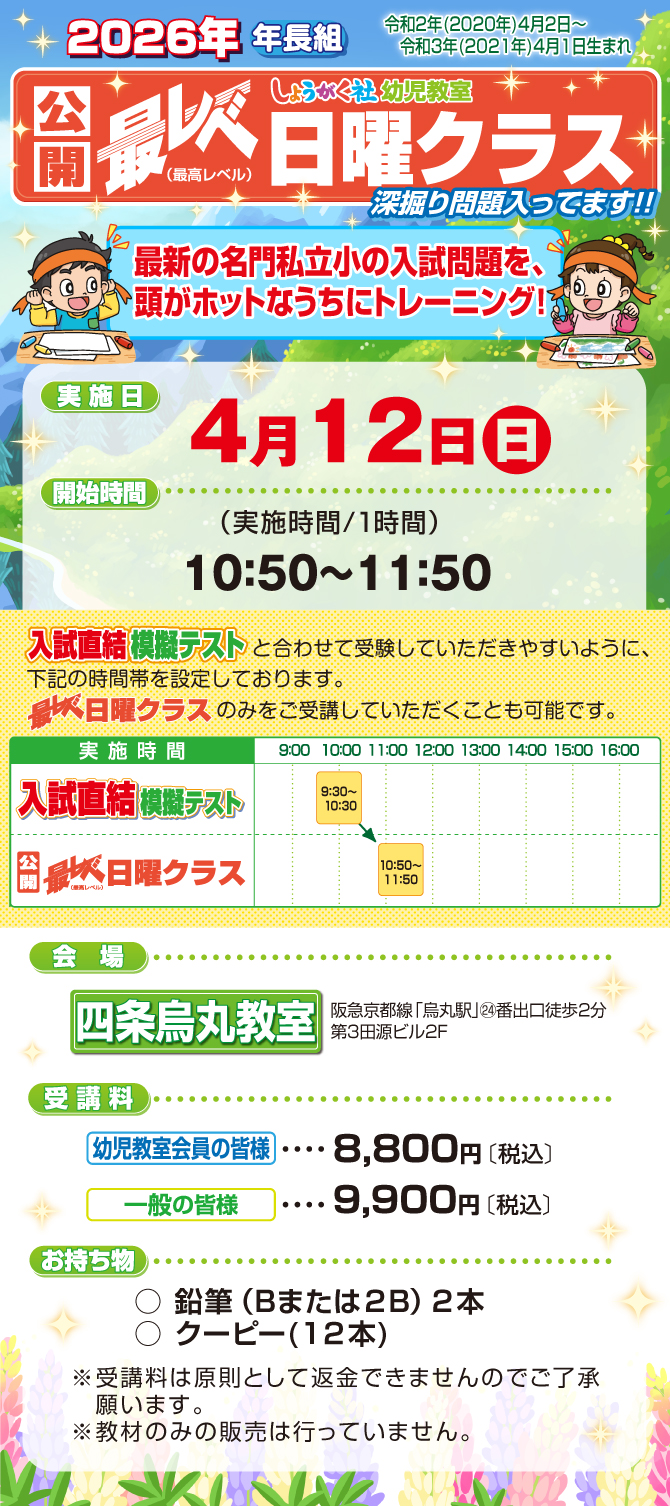 『入試直結年長模擬テスト』【四条烏丸教室】