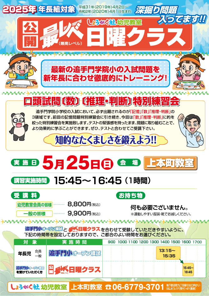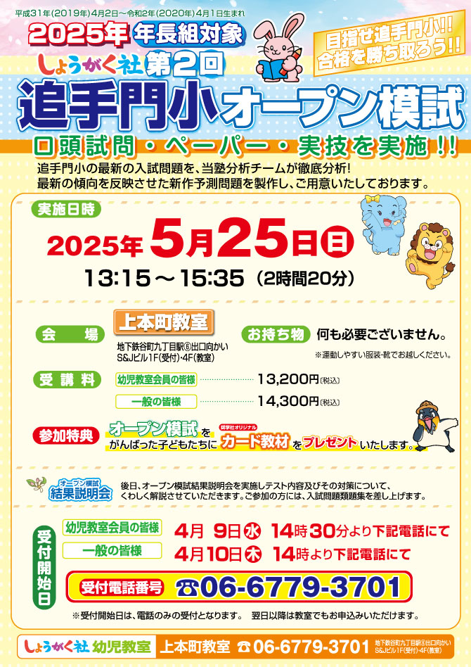 >  5月25日(日)実施!『第2回 追手門小オープン模試』のお知らせ【上本町教室】