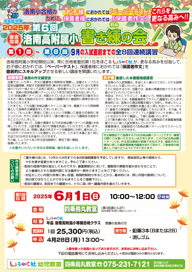 TOP >  【幼児部】トップ  >  6月1日(日)実施!『第6回 洛南高附属小 書き練の会』のお知らせ【四条烏丸教室】