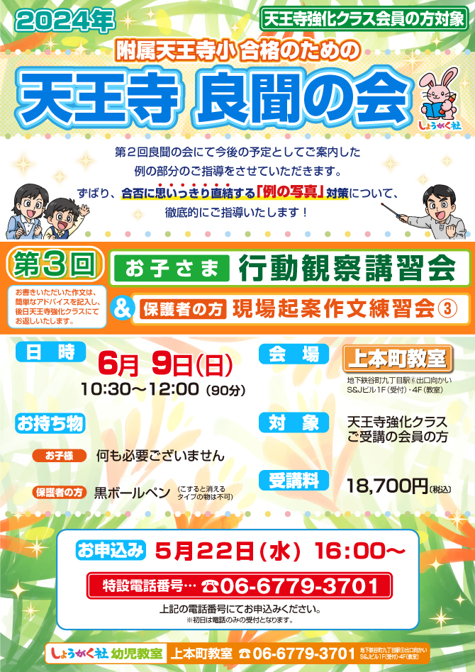 6月9日(日)実施!『第3回 天王寺 良聞の会』のお知らせ【上本町教室】