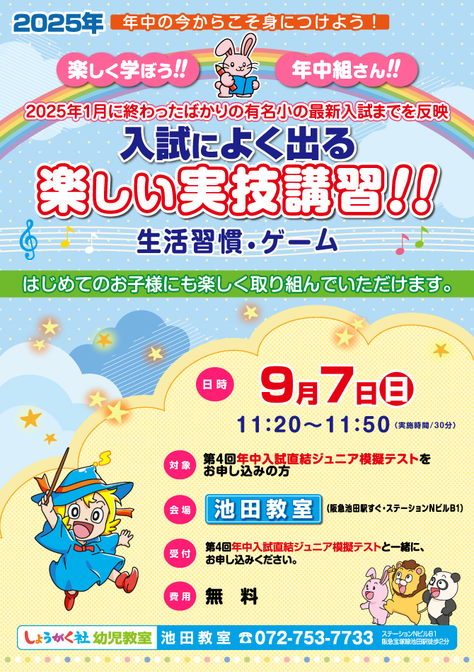 >  9月7日(日)実施!『第4回 入試直結ジュニア模擬テスト』のお知らせ【池田教室】
